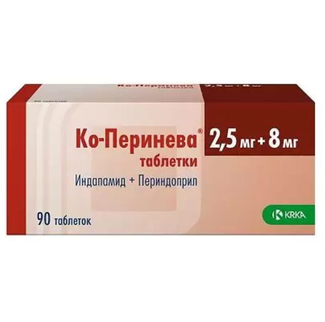 Ко-Перинева® — комбинированный препарат, содержащий ингибитор ангиотензинпревращающего фермента (АПФ) — периндоприл и тиазидоподобный диуретик — индапамид. Препарат оказывает антигипертензивное, диуретическое и вазодилатирующее действие.