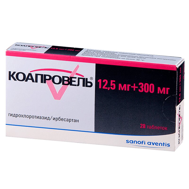 Коапровель® является комбинацией антагониста рецепторов ангиотензина II — ирбесартана и тиазидного диуретика — гидрохлоротиазида. Комбинация этих ингредиентов обладает аддитивным антигипертензивным эффектом, снижая артериальное давление в большей степени, чем каждый из них по отдельности.