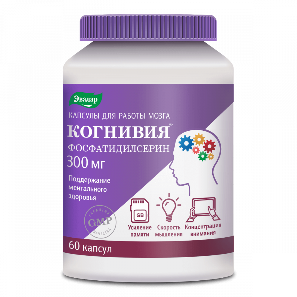 Справляться с перегрузками и повышать продуктивность рабочего дня помогают капсулы для работы мозга Когнивия Фосфатидилсерин.
