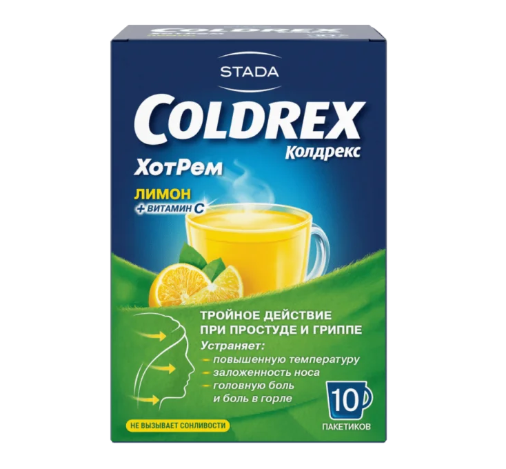 Колдрекс ХотРем порошок для приготовления раствора для приема внутрь лимонный пакетики 5г №10