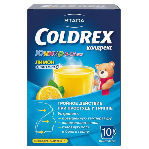 Колдрекс Юниор порошок для приготовления раствора для приема внутрь для детей пакетики 3г №10