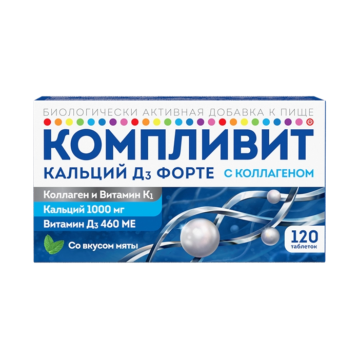 Компливит Кальций Д3 форте с коллагеном таблетки жевательные со вкусом мяты №120
