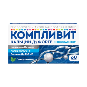 Компливит Кальций Д3 форте с коллагеном таблетки жевательные со вкусом мяты №60