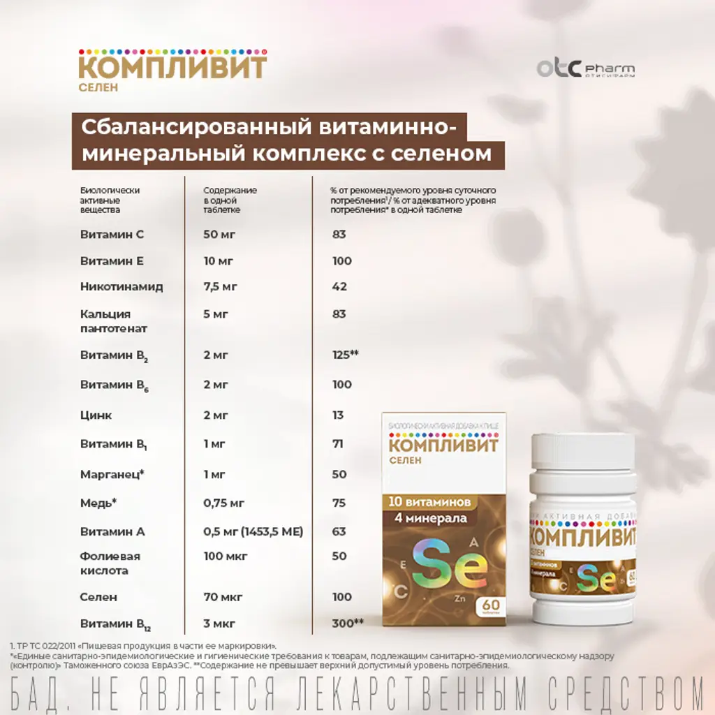 КОМПЛИВИТ® СЕЛЕН также содержит комплекс важнейших витаминов и минералов.