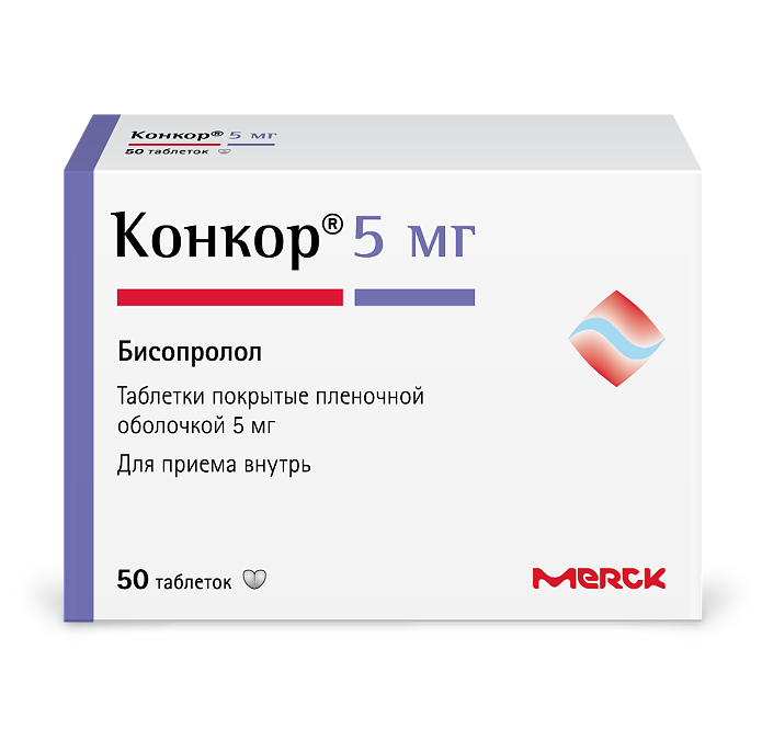 Конкор таблетки покрытые пленочной оболочкой 5мг №50