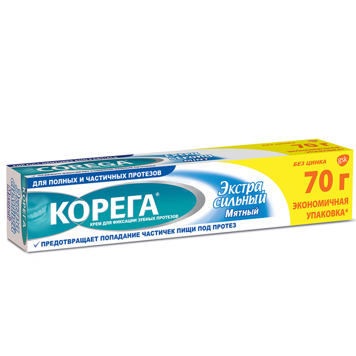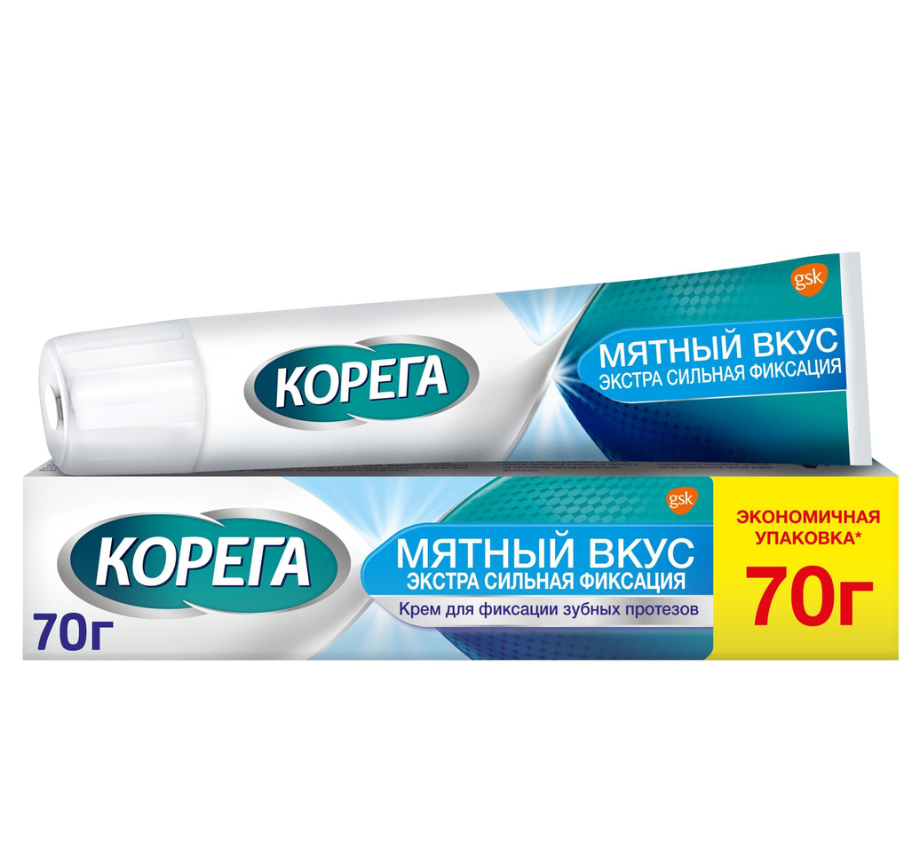 Крем для фиксации зубных протезов Корега Экстра сильный мятный повышает качество жизни людей, использующих зубные протезы.
