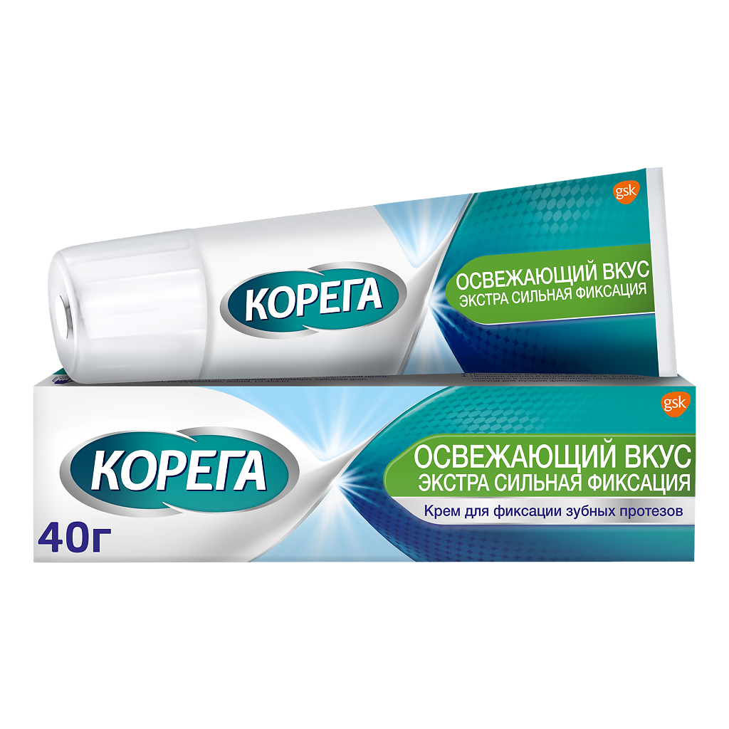 Корега Освежающий вкус Экстра сильная фиксация крем для фиксации зубных протезов туба 40г