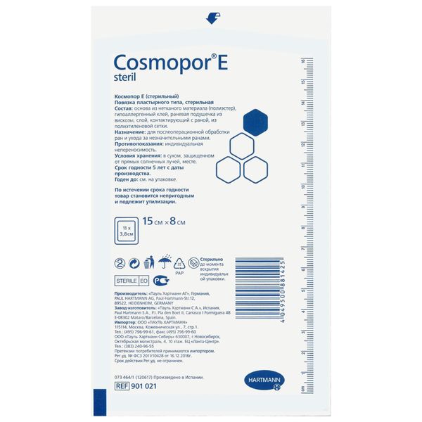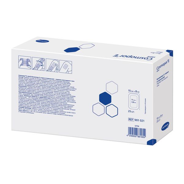 Cosmopor E – стерильная самоклеящаяся повязка на рану из мягкого нетканого материала с впитывающей подушечкой.