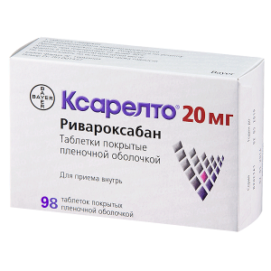 Ксарелто таблетки покрытые плёночной оболочкой 20мг №98