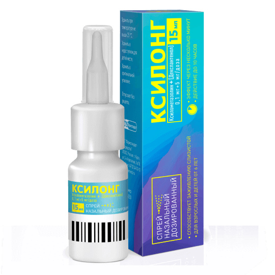 Ксилонг спрей назальный дозированный 0,1мг+5мг/доза флакон 15мл /100доз/