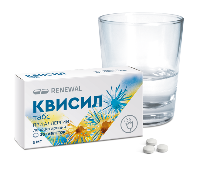 Левоцетиризин — действующее вещество препарата Квисил табс — это R-энантиомер цетиризина, мощный и селективный антагонист гистамина, блокирующий H1-гистаминовые рецепторы. Левоцетиризин оказывает влияние на гистаминозависимую стадию аллергических реакций, а также уменьшает миграцию эозинофилов, уменьшает проницаемость сосудов, ограничивает высвобождение медиаторов воспаления.