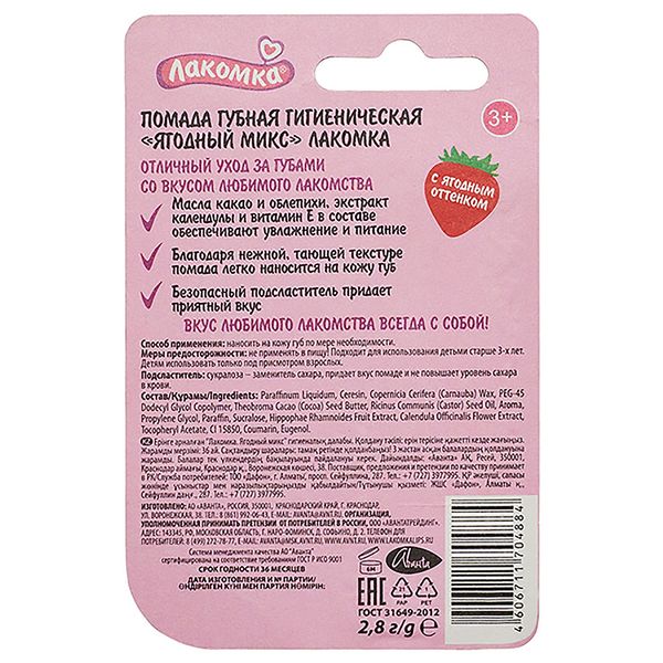 Лакомка помада гигиеническая Ягодный микс 2,8г