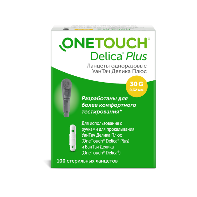 Тонкая игла одноразового ланцета (0.32 мм) OneTouch® Delica® Plus разработана для комфортного тестирования. Ланцеты для использования с ручкой для прокалывания OneTouch® Delica® Plus. Ланцеты диаметром всего 0.32 мм (32G) с силиконовым покрытием. Практически безболезненное тестирование!