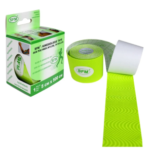 Лейкопластырь кинезио тейп SFM 5 см Х 500 см, представляет собой эластичную хлопковую ленту на клейкой гипоаллергенной основе.