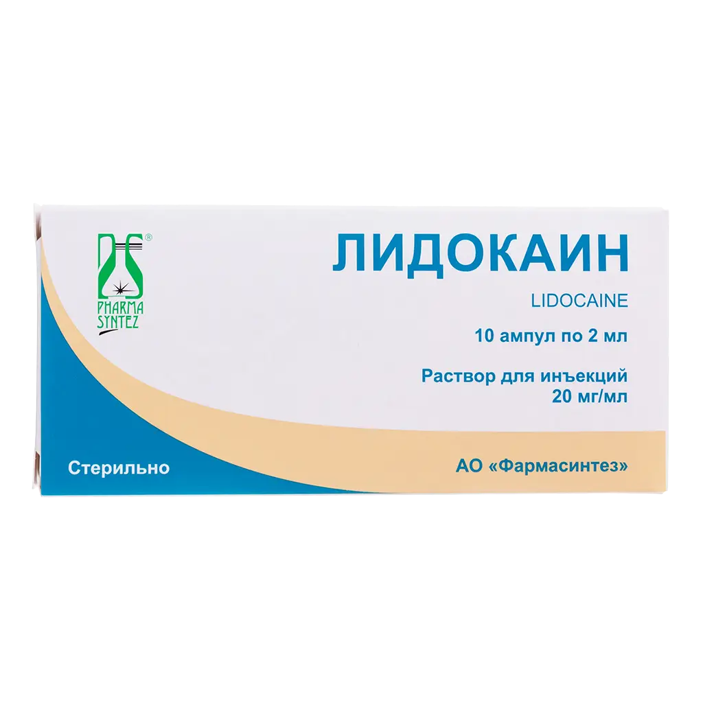 Лидокаин раствор для инъекций 20мг/мл ампулы 2мл №10