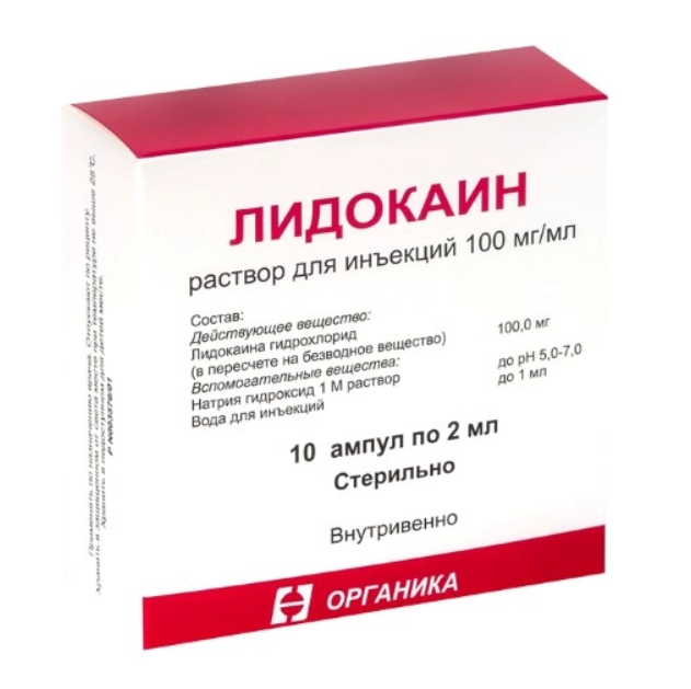 Лидокаин раствор для инъекций 100мг/мл ампулы 2мл №10 /Органика/