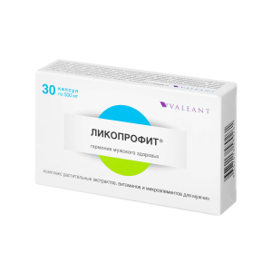 «ЛИКОПРОФИТ» является дополнительным источником витаминов Е, С, D3, антиоксвданта ликопина и минеральных веществ: хрома, цинка и селена, а также содержит стандартизованный экстракт плодов пальмы Сабаль (содержание жирных кислот не менее 25%) и стандартизованный экстракт травы хвоща полевого (содержание дубильных веществ в пересчете на танин не менее 5%).