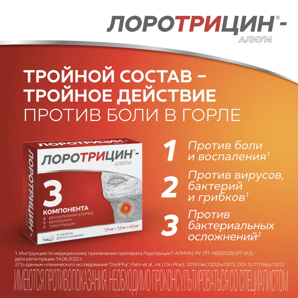 Лоротрицин-Алиум таблетки для рассасывания 1мг+1,5мг+0,5мг №12
