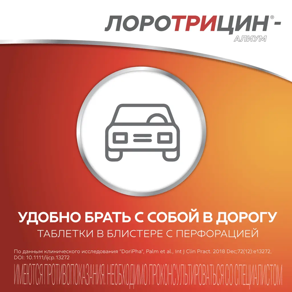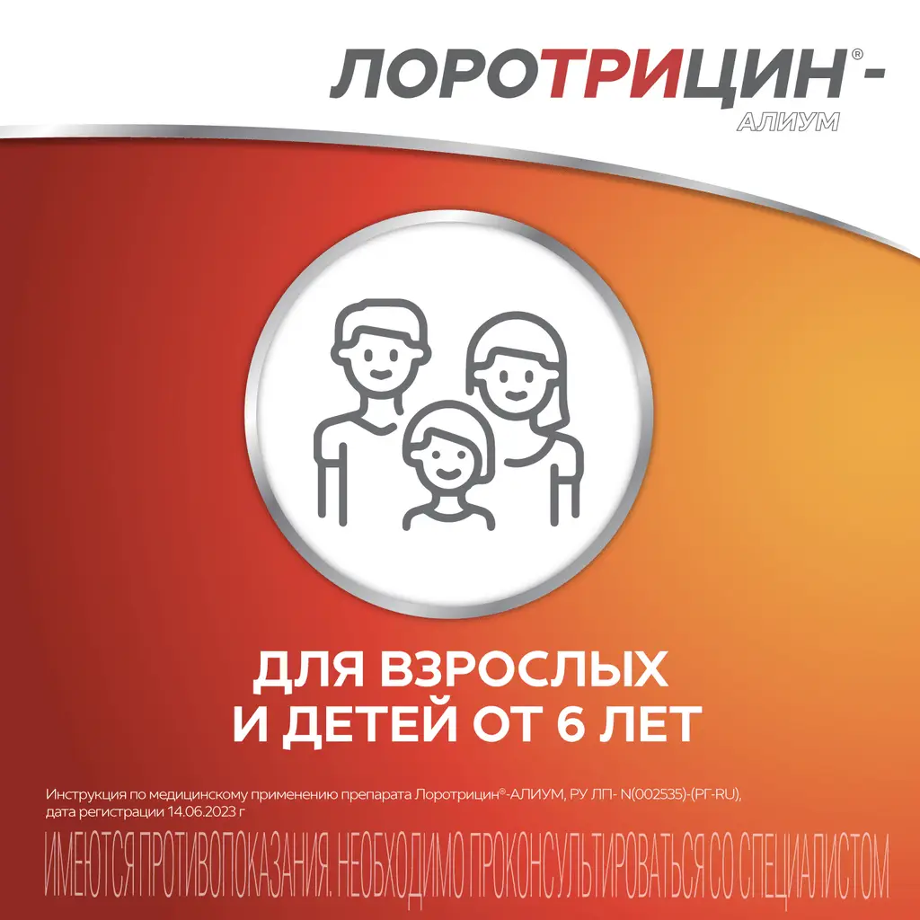В рекомендованных дозах случаев передозировки не описано. Случайный приём больших доз препарата ЛОРОТРИЦИН®-АЛИУМ может вызвать нарушения со стороны пищеварительной системы (тошнота, рвота, диарея), метгемоглобинемию (затруднение дыхания и голубоватый цвет кожи). В таком случае необходимо промыть желудок, принять активированный уголь и обратиться к врачу.