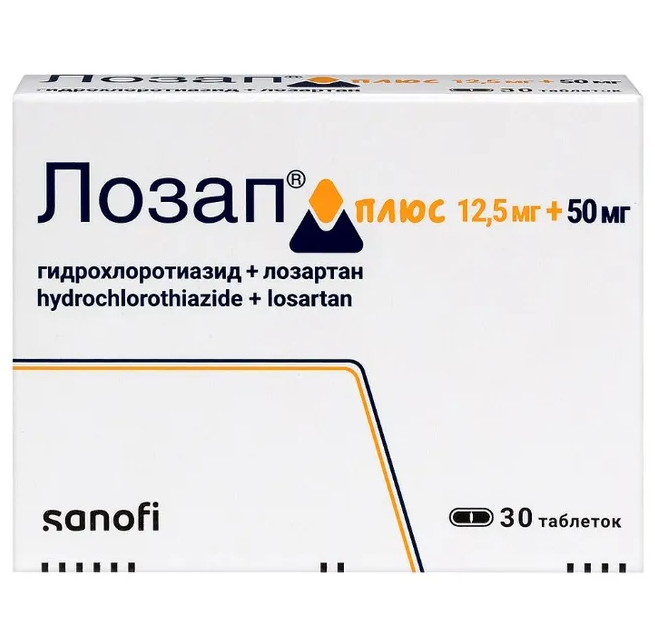 Лозап плюс таблетки покрытые плёночной оболочкой 50мг+12,5мг №30