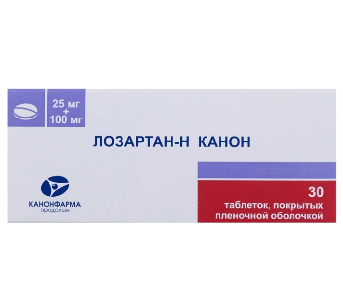 Лозартан-Н Канон таблетки покрытые пленочной оболочкой 25мг+100мг №30