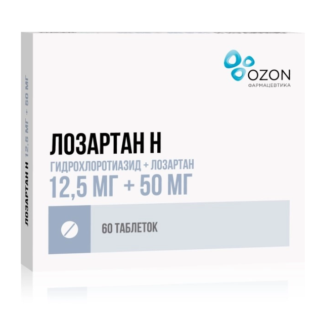Лозартан Н таблетки покрытые пленочной оболочкой 12,5мг+50мг №60