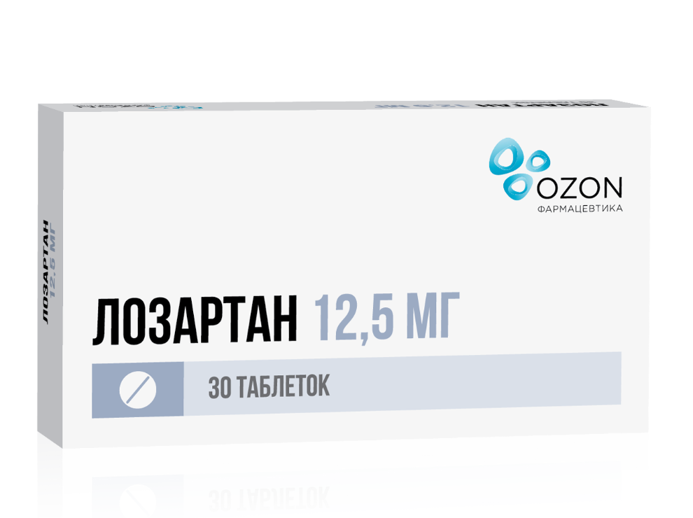 Лозартан таблетки покрытые пленочной оболочкой 12,5мг №30