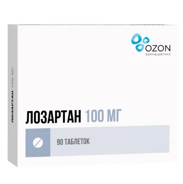 Действующее вещество: лозартан калия — 100,000 мг.