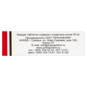 Лозартан таблетки покрытые плёночной оболочкой 50мг №30