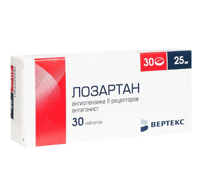 Лозартан-Вертекс таблетки покрытые пленочной оболочкой 25мг №30