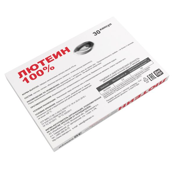 Лютеин 100% капсулы массой 476мг №30