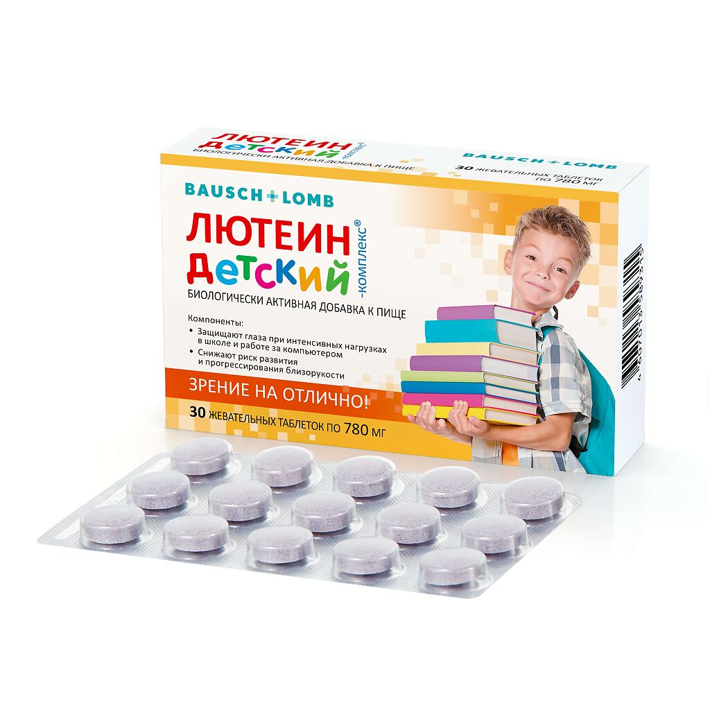 Необходимость усваивать большие объемы информации способствует значительному увеличению нагрузки на органы зрения, начиная с детского возраста. Около 20% выпускников школ страдают прогрессирующей, так называемой «школьной» близорукостью. Одной из причин роста числа детей с данной проблемой офтальмологи считают активное использование компьютеров. Очень важно обеспечить детей надежным средством защиты функций зрения при повышенной нагрузке и стрессах. «ЛЮТЕИН-КОМПЛЕКС Детский» – поликомпонентный продукт, содержащий лютеин, зеаксантин, ликопин, экстракт плодов черники, таурин, витамины А, С, Е и цинк.