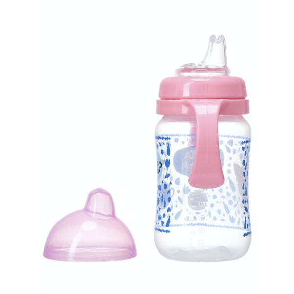 Мягкий носик из силикона не раздражает нежные десны малыша. Удобная форма ручек позволяет ребенку крепко держать поильник. Благодаря наличию широкого горлышка поильник легко мыть и наливать в него жидкость. Крышка защищает носик от загрязнения.