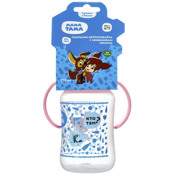 Купить Мама Тама поильник-непроливайка с силиконовым носиком 6мес.+ розовый 270мл по низкой цене