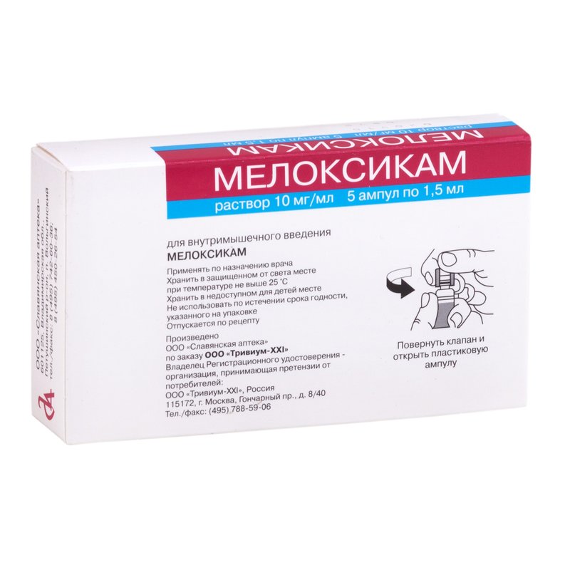 Мелоксикам раствор для внутримышечного введения 10мг/мл ампулы 1,5мл №5