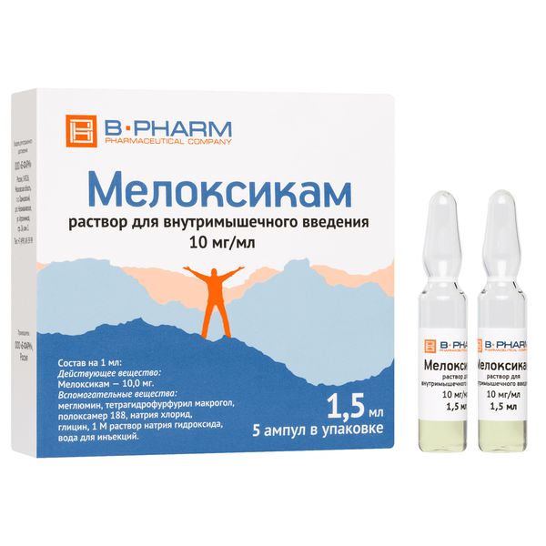 Мелоксикам раствор для внутримышечного введения 10мг/мл ампулы 1,5мл №5