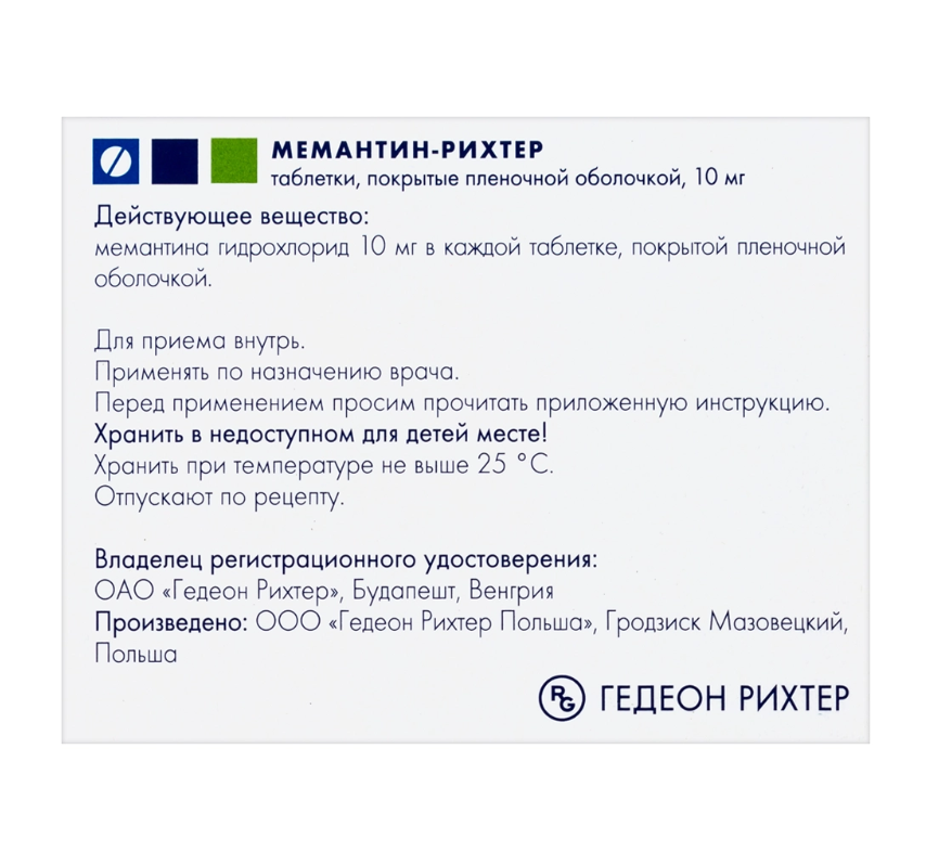 Мемантин-Рихтер таблетки покрытые плёночной оболочкой 10мг №60