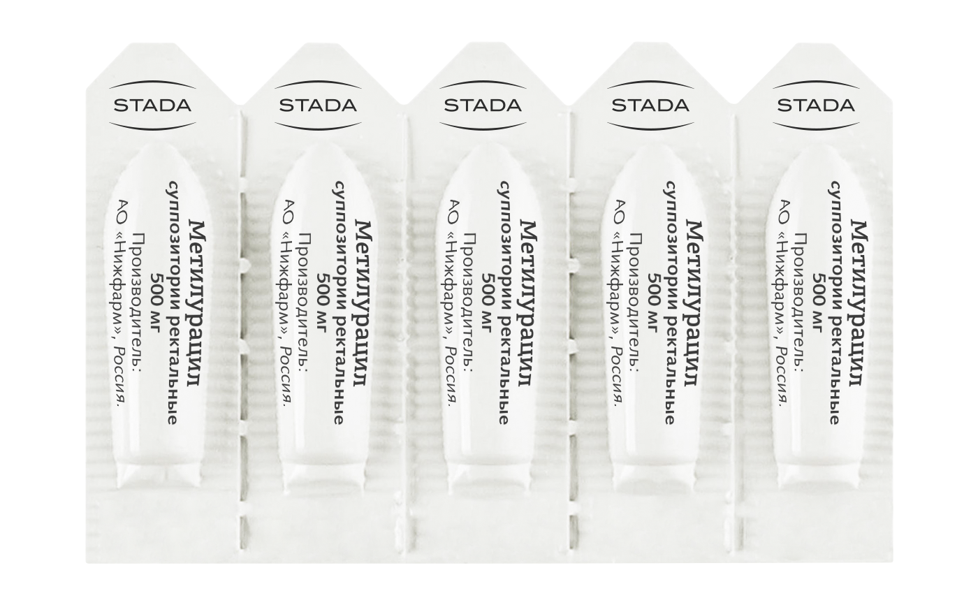 Действующее вещество - диоксометилтетрагидропиримидин (метилурацил) – 500 мг