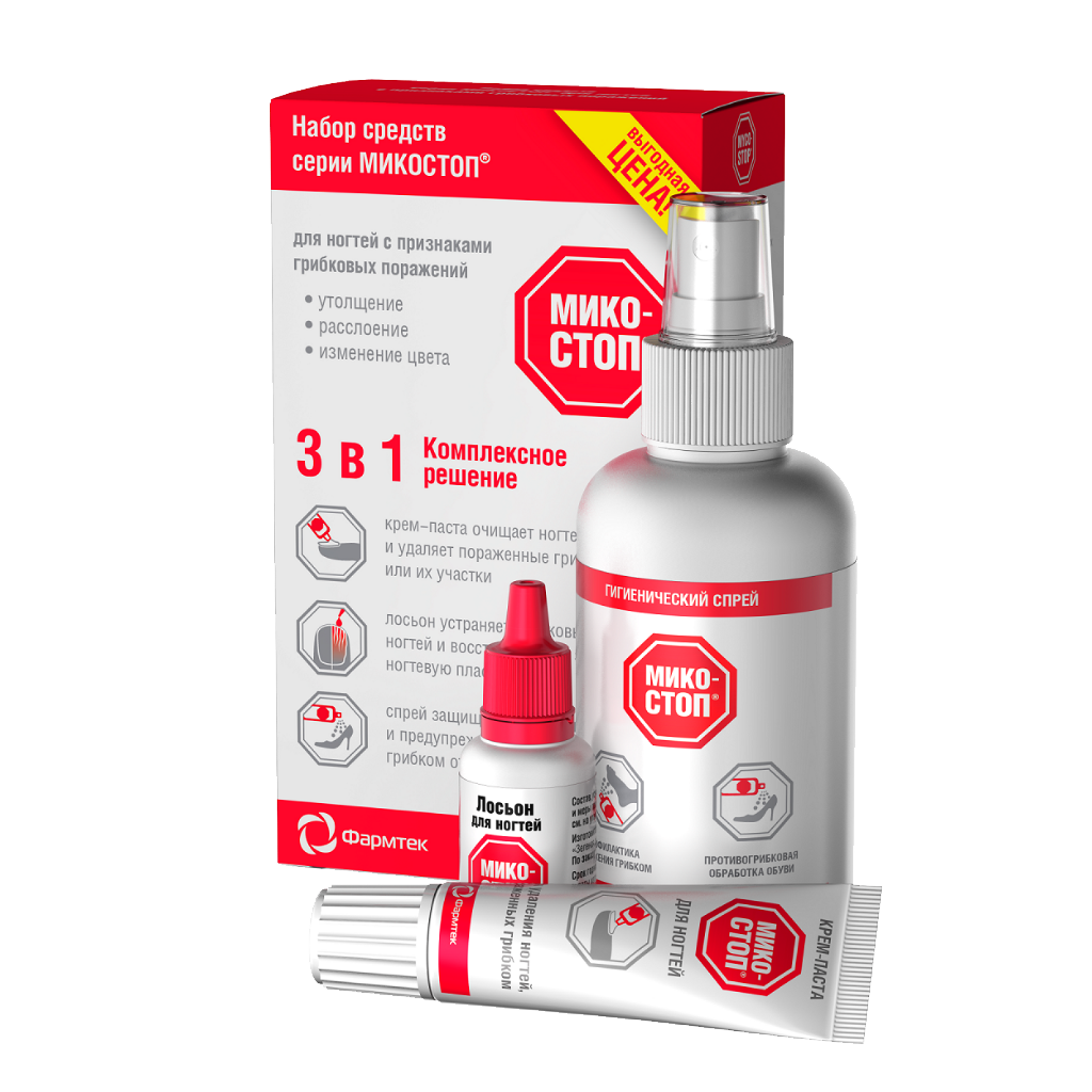 Купить Микостоп набор крем-паста для ногтей флакон 20мл + лосьон для ногтей 15мл + спрей гигиенический 150мл по низкой цене