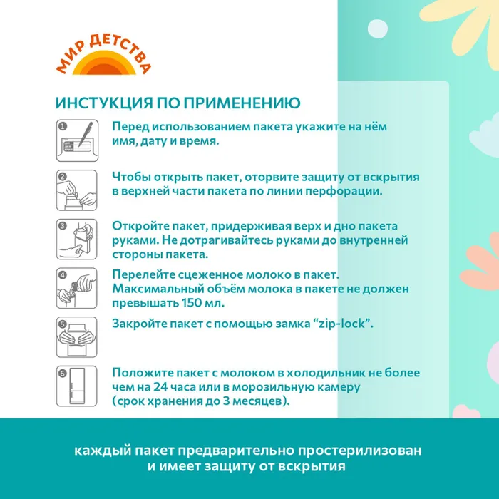 - Не используйте пакет вторично для хранения молока, он одноразовый.