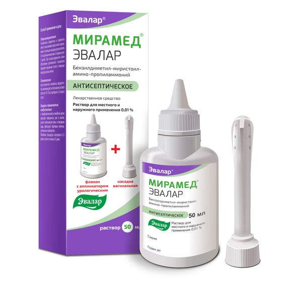 Мирамед Эвалар раствор для местного и наружного применения 0,01% флакон 50мл в комплекте с вагинальной насадкой