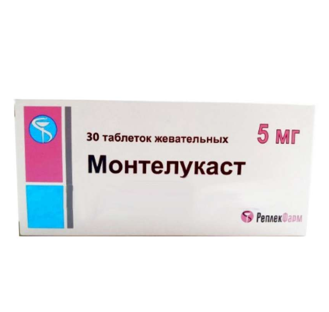 Действующее вещество: монтелукаст натрия 5,20 мг в пересчёте на монтелукаст — 5,0 мг.