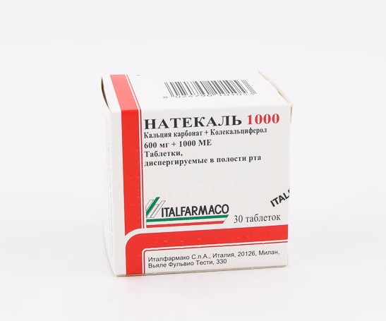 Натекаль 1000 таблетки диспергируемые в полости рта 600мг +1000МЕ №30