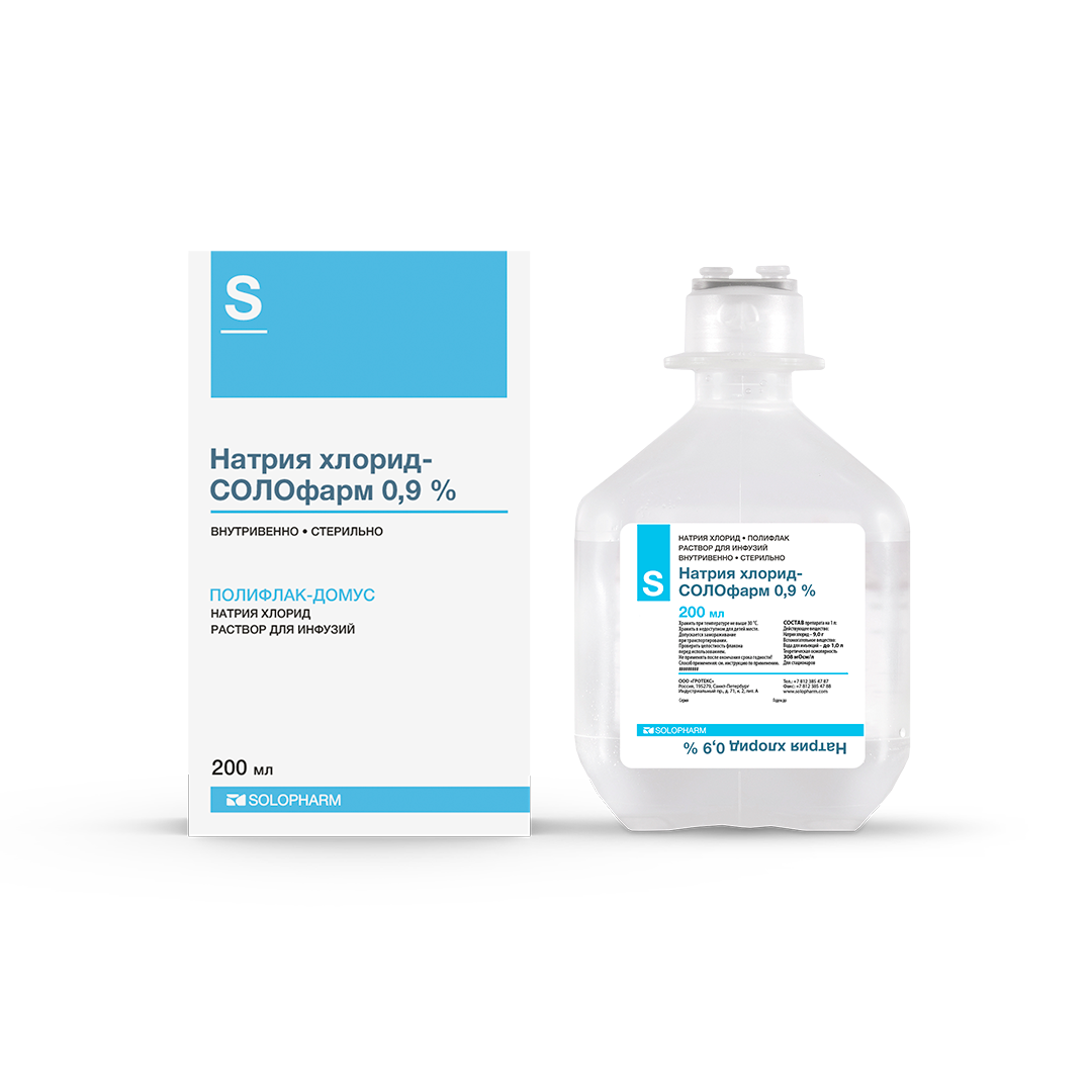 Натрия хлорид-Солофарм раствор для инфузий 0,9% флакон 200мл