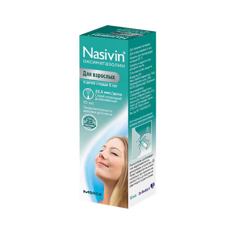 Действующее вещество: Оксиметазолина гидрохлорид 22,5 мкг.