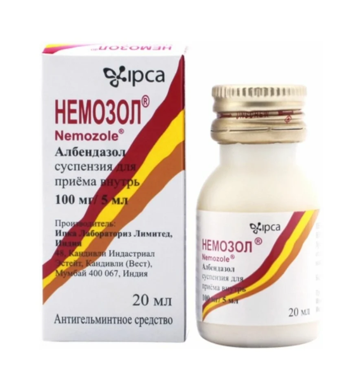 Немозол суспензия для приёма внутрь 100мг/5мл флакон 20мл