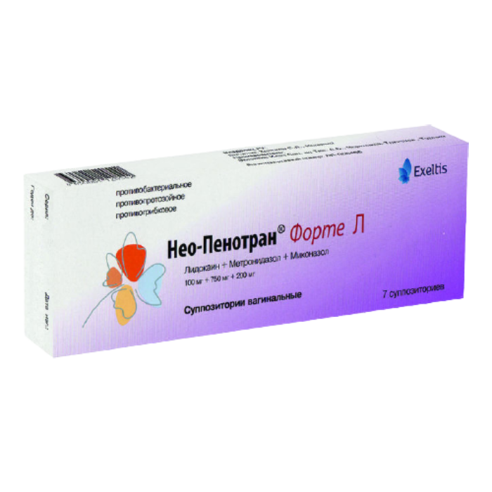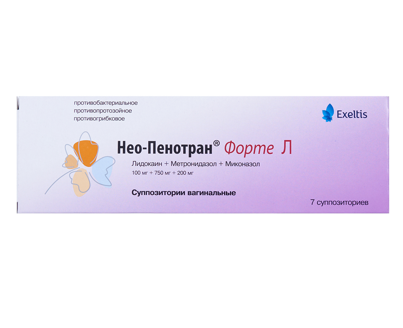 Препарат Нео-Пенотран® Форте Л представляет собой комбинацию метронидазола, миконазола и лидокаина.
