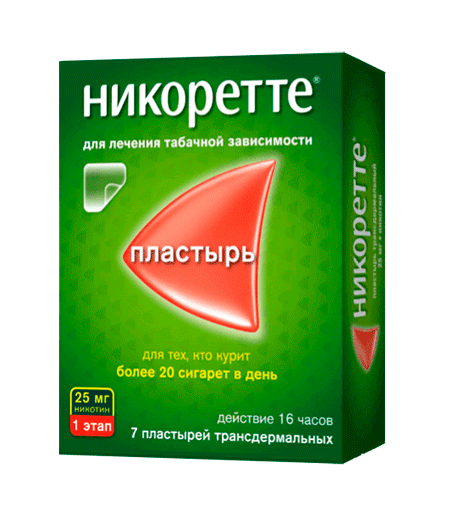 Никоретте® пластырь трансдермальный может применяться при резком отказе от курения, а также для увеличения промежутков времени между курением с целью как можно большего снижения курения до полного отказа от курения. Пациент должен сделать все возможное, чтобы окончательно бросить курить при лечении пластырем Никоретте® .