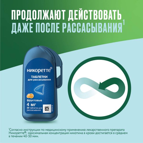 Никоретте таблетки для рассасывания покрытые пленочной оболочкой фруктовые 4мг №20