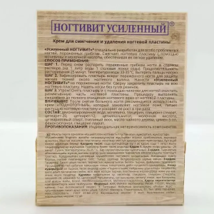 Сильнодействующий препарат - отличный помощник в борьбе против различных грибковых заболеваний. Специальная формула гарантирует избавление от недуга и ускоренный рост новой здоровой ткани. Ногтевит усиленный наружное средство для ускоренного удаления ногтевых пластин пораженных грибком. Действенность препарата подтверждена многолетней практикой применения. В состав крема входят активные природные компоненты: мочевина, молочная кислота, пчелиный воск, эфирное масло чайного дерева, оказывающие антисептическое и заживляющее действие. После обработки кремом Ногтевит усиленный ногтевая пластина размягчается, после этого требуется произвести снятие пораженного слоя при помощи маникюрной пилочки. Масло чайного дерева и пчелиный воск подавляют патогенную микрофлору и способствуют регенерации клеток.